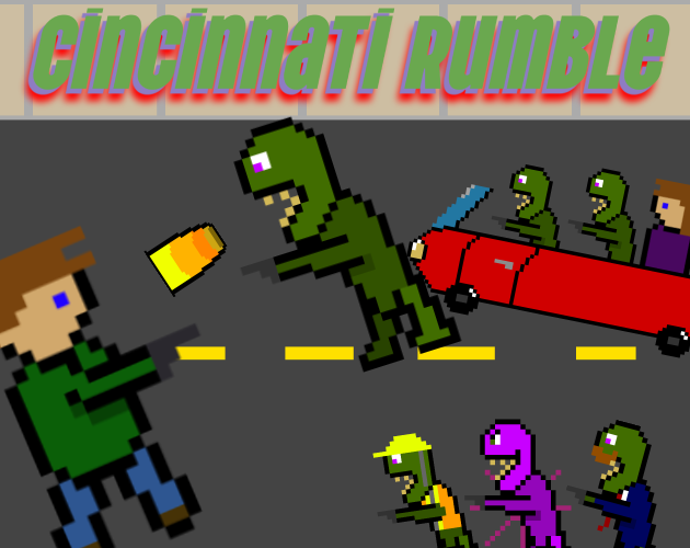 Cincinnati Rumble is a side scrolling shoot-em-up with roguelite elements. Each level is action packed, with challenging bosses awaiting you at the end of each. Not just that, but the zombies get tougher the further you get! Can you manage to save your sister?